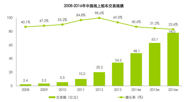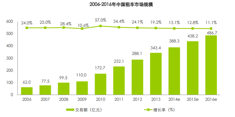 艾瑞咨詢(xún)最新統計數據顯示,中國租車(chē)市場(chǎng)處于高速發(fā)展期,2013年市場(chǎng)規模343.4億元,增速19.2%,預計2014年租車(chē)市場(chǎng)增速保 持在10.0%以上。 艾瑞分析認為,我國逐年增長(cháng)的駕駛員規模表明用戶(hù)對汽車(chē)使用的剛性需求,大量的潛在租車(chē)用戶(hù)推動(dòng)著(zhù)租車(chē)市場(chǎng)的高速發(fā)展;另一 方面,用戶(hù)使用習慣正在養成,隨著(zhù)國內監管制度更加健全,租車(chē)企業(yè)管理模式的逐漸成熟,市場(chǎng)將迎來(lái)增長(cháng)爆發(fā)期。