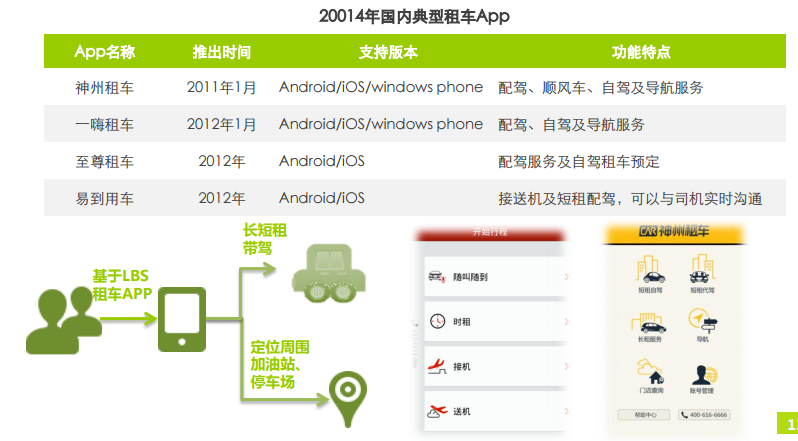 隨著(zhù)我國的網(wǎng)絡(luò )覆蓋系統日趨完善,手機、平板電腦的用戶(hù)更多開(kāi)始利用碎片時(shí)間,在移動(dòng)互聯(lián)網(wǎng)時(shí)代來(lái)臨之際,各大PC時(shí)代的傳 統網(wǎng)購企業(yè)紛紛強化移動(dòng)戰略。國內主流線(xiàn)上租車(chē)企業(yè)紛紛發(fā)力移動(dòng)端布局。不過(guò)主流大型連鎖企業(yè)App功能差異較小,均以基本 的租車(chē)預定為主,其中神州租車(chē)、至尊租車(chē)App中會(huì )提供帶駕業(yè)務(wù)。以約租車(chē)為主的第三方租車(chē)平臺易到用車(chē)只提供帶駕業(yè)務(wù)???的來(lái)說(shuō),國內租車(chē)App功能單一并且差異較小。