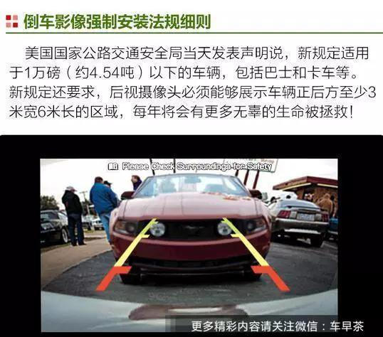 倒車(chē)印象是個(gè)好東西,關(guān)于平時(shí)泊車(chē)倒車(chē)來(lái)說(shuō),效果無(wú)窮。美國現已出臺法案,在2018年5月1日以后,在美出售的車(chē)型有必要設備倒車(chē)印象,這也是為了進(jìn)步倒車(chē)的安全性。要知道,國內設備倒車(chē)印象,要么是高配車(chē),要么自個(gè)掏錢(qián)加裝吧。