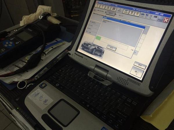然后把車(chē)放下來(lái),接上電腦查看有無(wú)毛病碼。